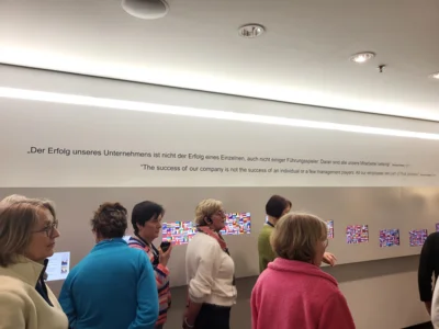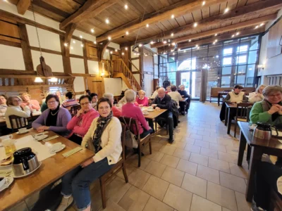 Wir Lohner LandFrauen machten uns auf den Weg nach Bielefeld, um die Dr. Oetker Welt zu besichtigen. Bevor es jedoch zur bekannten Lebensmittelmarke ging, legten wir eine gemütliche Kaffeepause im Hofcafé zur Müdehorst ein. Das Café befindet sich auf einem denkmalgeschützten Bauernhof, auf dem uns bereits eine beeindruckende Auswahl an selbstgebackenen Torten erwartete. Der Ort ist reich an Geschichte: Schon im Jahr 789 gründete der Edelherr Waltger von Dornberg hier das erste Kloster in Westfalen, dessen Reste noch heute im Erdreich verborgen liegen. Zu Zeiten Napoleons, im Jahr 1811, verlief die Staatsgrenze zu Frankreich nahezu direkt am Garten – zum damaligen Königreich Westfalen. Seit 2008 existiert das Café im idyllischen Schwarzbachtal, wo bis heute Wiesen, Schafe und Gänse das Bild prägen. Besonders eindrucksvoll ist der reich verzierte Deelenbalken, geschmückt mit bunten Kraggen, Engeln und Versen – ein echtes Schmuckstück westfälischer Hofkultur. Nach dieser genussvollen Pause führte uns die Fahrt weiter zur Dr. Oetker Welt. Die Geschichte des Unternehmens Dr. Oetker beginnt im Jahr 1891, als der junge Apotheker Dr. August Oetker die Aschoff’sche Apotheke in Bielefeld übernahm. Dort entwickelte er ein Produkt, das den Grundstein für den späteren Welterfolg legte: das Backpulver „Backin“. Sein Anspruch war es, ein Backpulver zu schaffen, das zuverlässig gelingt und das Backen für alle einfacher macht. Mit dieser Idee traf er den Nerv der Zeit – und „Backin“ wurde schnell zu einem Verkaufsschlager. Aus der kleinen Apotheke entwickelte sich in den folgenden Jahrzehnten ein stetig wachsendes Unternehmen, das sein Sortiment kontinuierlich erweiterte. Neben Backzutaten kamen bald Puddingpulver, Dessertprodukte und später Tiefkühlwaren wie die heute weltbekannte Dr. Oetker Pizza hinzu. Trotz des Wachstums blieb das Unternehmen ein Familienbetrieb, der bis heute von den Werten seines Gründers geprägt ist: Qualität, Verlässlichkeit und Innovationsfreude. Heute arbeiten weltweit über 16.500 Menschen für Dr. Oetker. Die Produktionszahlen sind beeindruckend: 2,3 Millionen Pizzen werden täglich hergestellt, dazu rund 540.000 Tütchen Backpulver. Das moderne Hochregallager des Unternehmens bietet Platz für 15.000 Paletten – ein logistisches Meisterwerk, das zeigt, welche Dimensionen das Unternehmen inzwischen erreicht hat. Und was einst mit einer Apotheke und einer Idee begann, ist heute ein international erfolgreiches Familienunternehmen – und gleichzeitig ein Stück deutscher Wirtschaftsgeschichte. Denn heute gehört Dr. Oetker zu den bedeutendsten Lebensmittelherstellern Europas. Nach der informativen Führung durften wir uns auf hausgemachte Spezialitäten freuen: Wir probierten den Seelenwärmer – Geschmack Vanille, verschiedene Müslisorten und natürlich auch Pizzen aus dem Hause Oetker. Vor der Abfahrt bot sich uns im kleinen Verkaufsraum die Gelegenheit, einige Produkte käuflich zu erwerben. Zusätzlich erhielten wir vom Unternehmen eine kleine Tüte mit Produkten als Geschenk – eine nette Überraschung zum Abschluss. So ging ein informativer und abwechslungsreicher Tag schneller zu Ende als erwartet. Und eines können wir jetzt mit einem Lächeln sagen: Bielefeld gibt es doch.